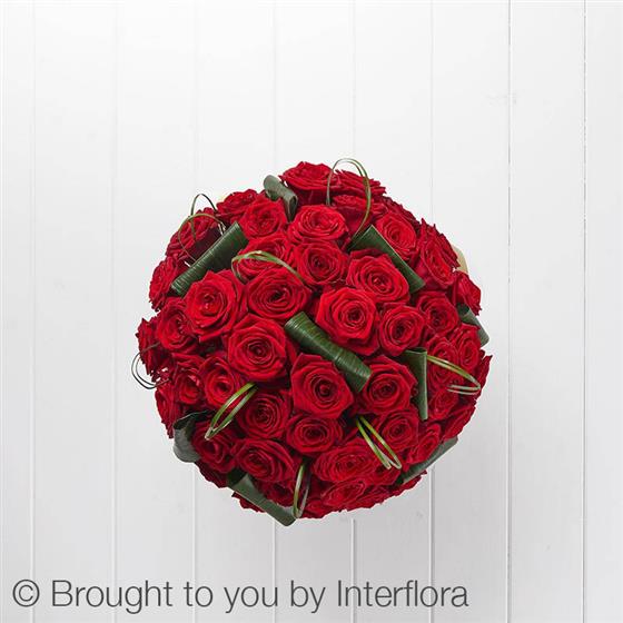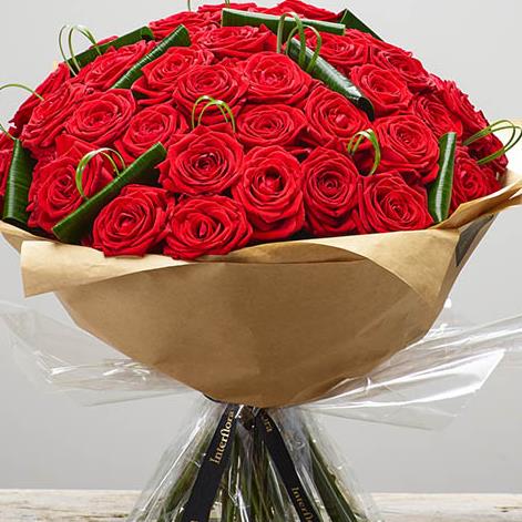 Featuring large headed red roses hand-tied with aspidistra leaf and bear grass and finished with gift wrap and ribbon.