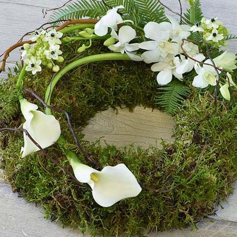 Made using a wire and moss base (with no floral foam) this calla lily wreath isn't just beautiful, it's eco-friendly.