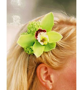 A Pretty lapel corsage for a lady guest of "ruffled" with green orchid along with white ribbon.