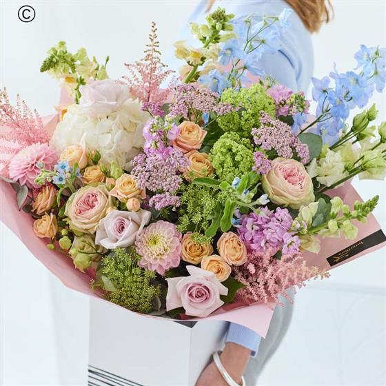 Each and every design is one-of-a-kind, created by an artisan florist using the freshest stems available on the day so, whilst your gift will look different to the one pictured, it’ll still be just as lovely.