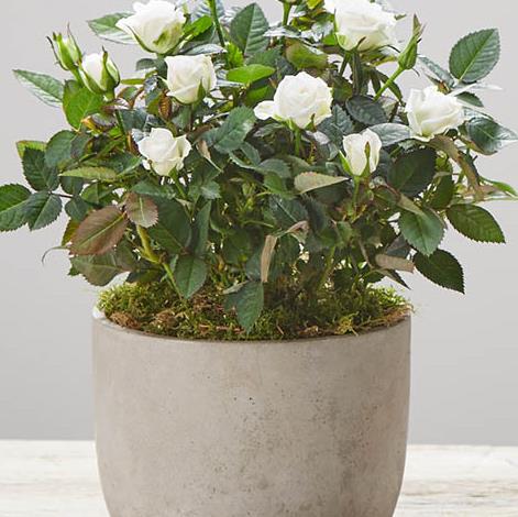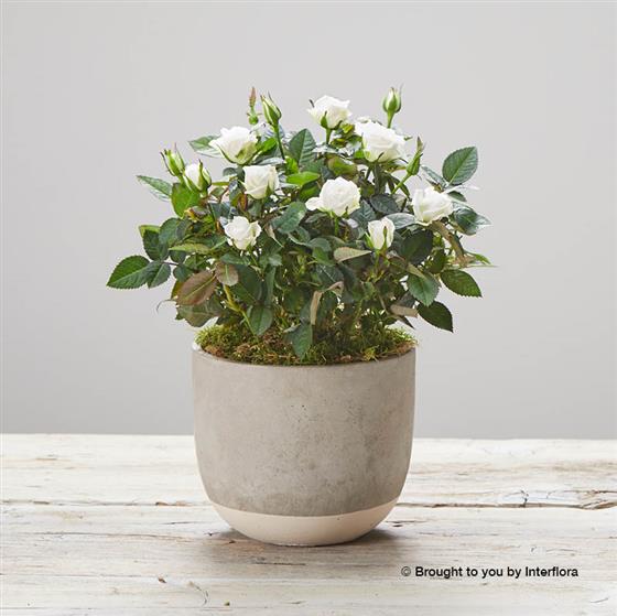 This beautiful gift features a lovely cream rose plant, planted in a stylish grey concrete pot.