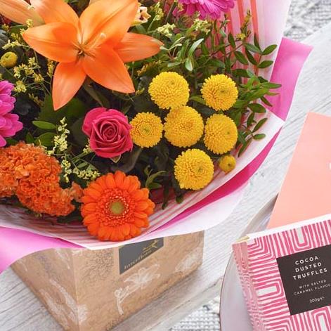Pull out all the stops this Mother's Day with a vibrant handcrafted bouquet, a luxury Belgian chocolate selection and a lovely 'Just for you' card too. All delivered with love and care by a local florist.