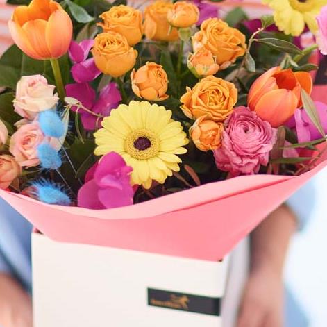 A gorgeous bouquet of fresh flowers, expertly chosen, arranged and delivered by the florist. This year our Mother’s Day designs are all about gorgeous pastels with pops of colour. Expect to see shades of baby pink, cream, and lemon with bursts of cerise and tangerine, and highlights of pale blue and lilac.