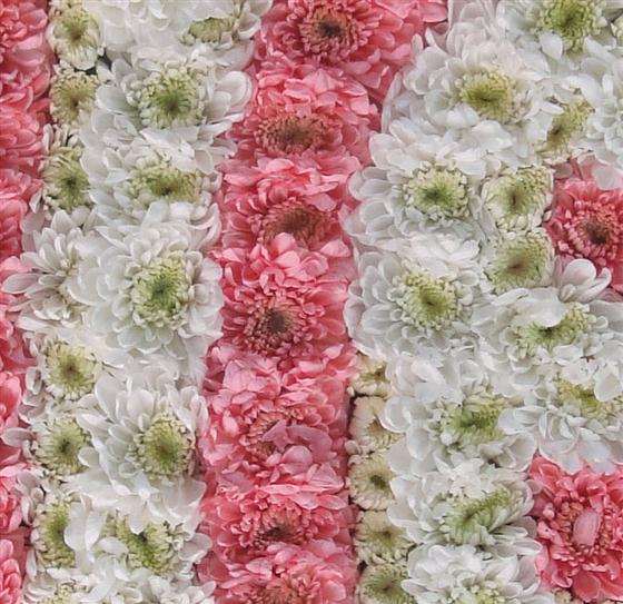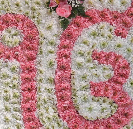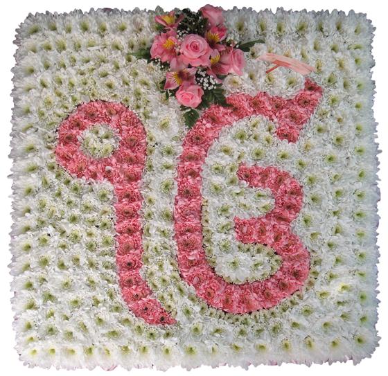 Ek omkar is a symbol of the unity of God in Sikhism, and is found on all religious scriptures and places such as Gurdwaras. Ek Omkar Tribute made on large Oasis floral foam base with Pink & White chrysanthemums with ribbon trimming.