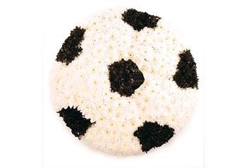 A mass of white double spray chrysanthemums are used in this football-themed tribute, with some sprayed black to create the distinctive pattern.