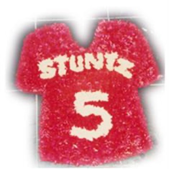 A red football t-shirt made delicately with dyed flowers and a name and number at the centre. The name and number can be customised to your liking.