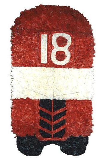 A Beautiful Red bus Tribute made on Large oasis floral foam base with double spray chrysanthemums and spray with colour.