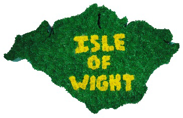 Isle Of Wight Map tribute cut out made on Oasis floral foam base with chrysanthemums With Ribbon Trimming.