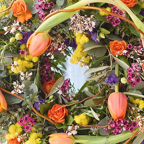 Who says wreaths are only for Christmas? This gorgeous spring wreath is a celebration of fresh flowers in vibrant colours.